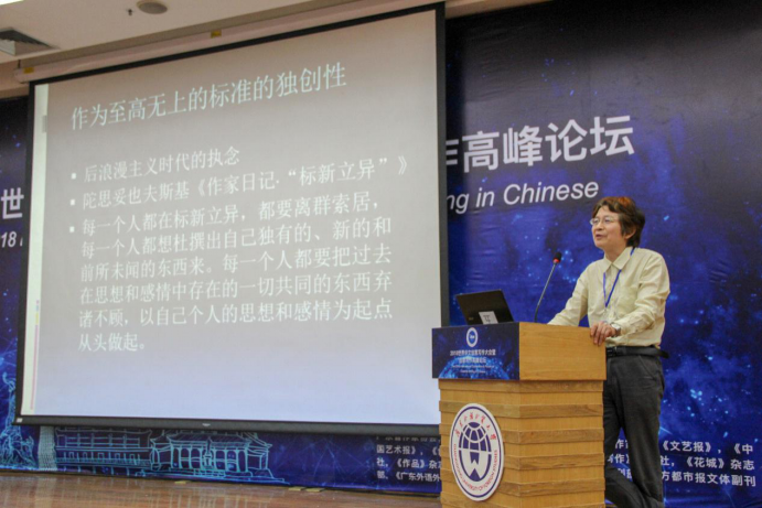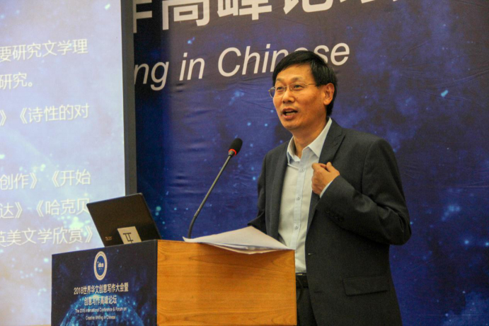 紧接着是王宏图关于《创意写作与经典文学文本》的演讲。王宏图指出:“在浪漫主义兴起后,模仿经典文学文本成为了创新的障碍,人们倡导自由精神,并拒绝让陈规成说束缚人的精神。”但却他认为经典文学中仍有许多可取之处,如古希腊文学对欧洲作家作品就有深远影响。因此,在众声喧哗、人工智能迅速发展的今天,他主张:“既要学习经典文学文本,又要结合现实,才能写出好的作品。”