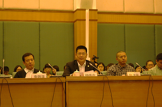 本网讯 2015年10月27日上午,研讨作家毕飞宇作品的学术会议于行政楼三楼国际会议厅召开。此次会议由中文学院、翻译学院联合承办,由外语研究与语言服务协同创新中心、美国Chinese Literature and Culture杂志编辑部共同协办。中国作家协会副主席、评论家李敬泽,暨南大学党委书记、教授、广东省作家协会主席蒋述卓,广东省作家协会专职副主席、诗人、评论家杨克,中国现代文学馆馆长助理、小说家李洱,浙江省作家协会副主席、小说家艾伟、我校校长仲伟合等出席了研讨会。研讨会由中文学院院长伍方斐主持。