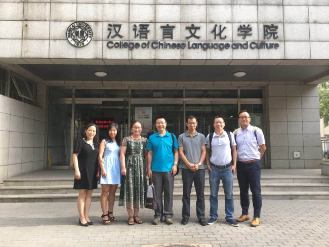 6月5日上午,调研小组来到天津师范大学文学院,受到副院长鲍国华、学科带头人陈燕、语音实验室负责人时秀娟、学工办尹德军、教研室主任邱闯先等五位老师的热情接待。下午,调研小组来到南开大学汉语言文化学院,受到冉启斌副院长和汉语国际教育系主任董淑慧两位老师的热情接待。当天的研讨,双方主要就专业设置、筹建、发展情况;对外汉语实验室建设和教学情况;师资、教学和考试情况;学生实习、实践;招生和就业;学生工作情况等方面进行了广泛而深入的交流。