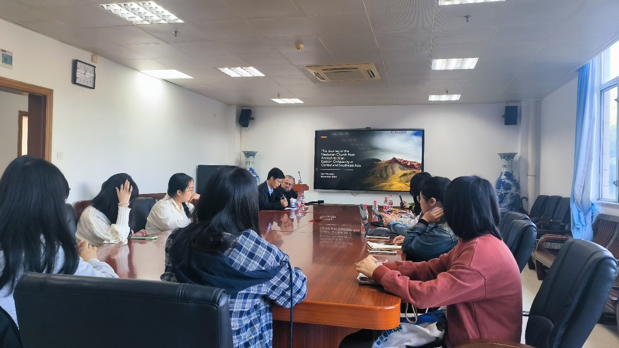2024年11月26日上午,斯德哥尔摩大学学院的Cyril Hovorun教授在广外北校区七教408会议室作《中外文化交流中的聂斯托利派:从安提阿到西安》的专题讲座。会议由中文学院邱业祥教授主持,50余名师生参会
