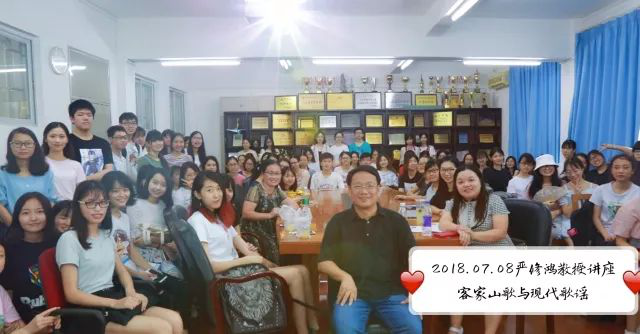 在大家的极力要求下,严教授现场教唱了客家山歌《我教你唱山歌》,同学们兴致勃勃,与教授一同领略客家山歌的魅力。