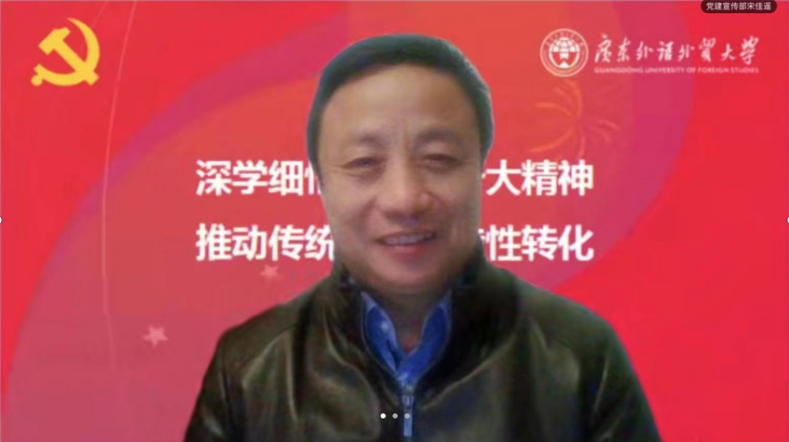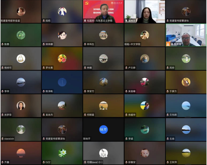 本网讯 2022年12月1日晚,中文学院召开学习贯彻党的二十大精神线上宣讲会,马克思主义学院院长毛国民教授作题为“深学细悟党的二十大精神,推动传统文化创造性转化”的专题宣讲。宣讲会由中文学院党委书记谢秀兰主持,学院全体教师参加。