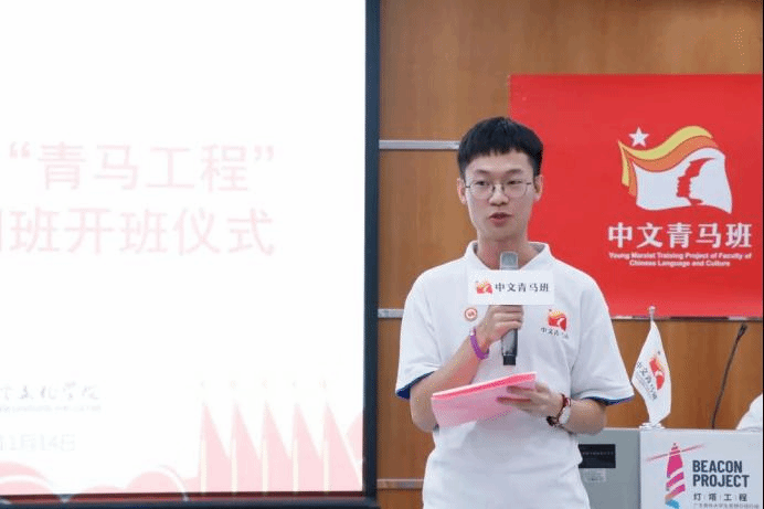 李锦鸿首先带领大家回顾了中文学院青马班的开展情况。一直以来,中文学院青马班以习近平总书记关于青年的讲话精神为指导,积极响应“灯塔工程”的要求,采用精英教育模式,具有独特的班级文化和鲜明的班级特色。本次青马班将继往开来,增加关于中国传统文化的相关课程学习,继续“说好中国故事,展现中国青年的青春魅力”。