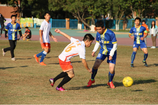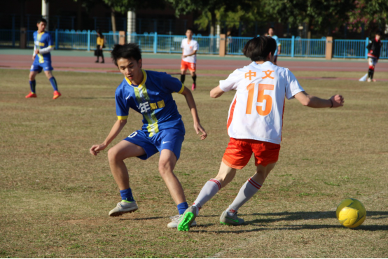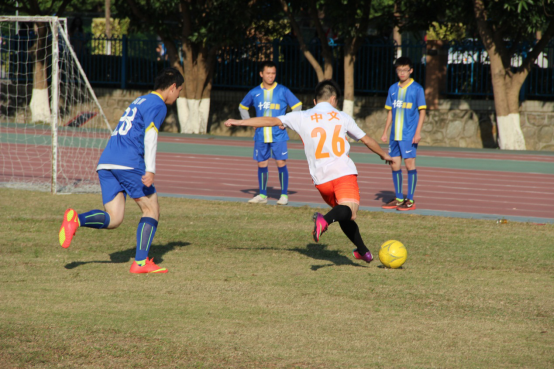 本网讯 12月17日下午,来自中文学院与高翻学院的足球队员在北校区真草田径场展开了一场激烈的角逐。广州罕见的低温挡不住球员们的激扬斗志,一声哨响,14名球员迅速进入比赛状态。