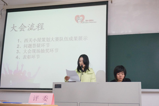 本网讯 3月10日晚上,第四届西关小屋策划大赛暨优秀志愿者表彰大会在六教B201举行。出席大会的有评委白云山西门志愿者驿站站长张志武、中文团学副书记张晓宜、中文团学实践部与中文志协部长苏彩霞以及副部长洪毓敏和文华娟、还有参赛者及优秀志愿者等。