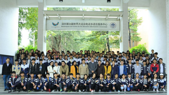 离开前,黄花中学全体师生与我校领导和志愿者在六教中庭合照,一天的访问交流圆满结束。