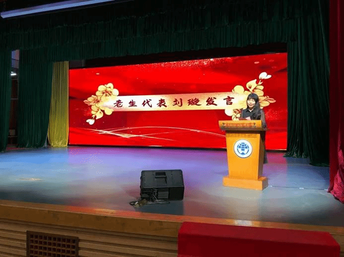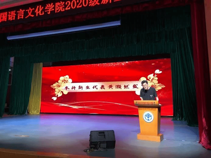 研究生新生卫冰和本科新生黄灏然紧接着上台发言。两人不约而同地分享了自己的喜悦与激动,表达对未来的无限憧憬与期许,并为台下的同学送上最真挚的祝福。
