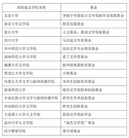 附中国大陆高校或文学院设有专项基金用于奖励扶助学生或文学创作情况汇总(以下数据通过bing网络检索“文学基金”所获,时间截止到2020年12月29日。如有疏漏,请留言告知):