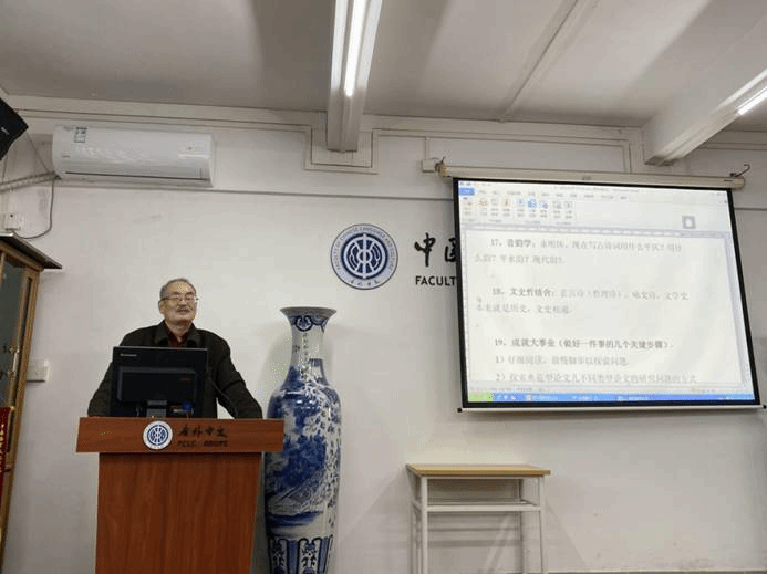 胡大雷教授首先讲述了“转变观念”的重要性,告诉我们进入研究生阶段要告别本科时期的学习方式,从记忆性学习转向研究性学习,从学知识转向学做学问,知道如何提出问题并解决问题。其次是做学问要与做人相结合,只有身心健康才能更好地治学。