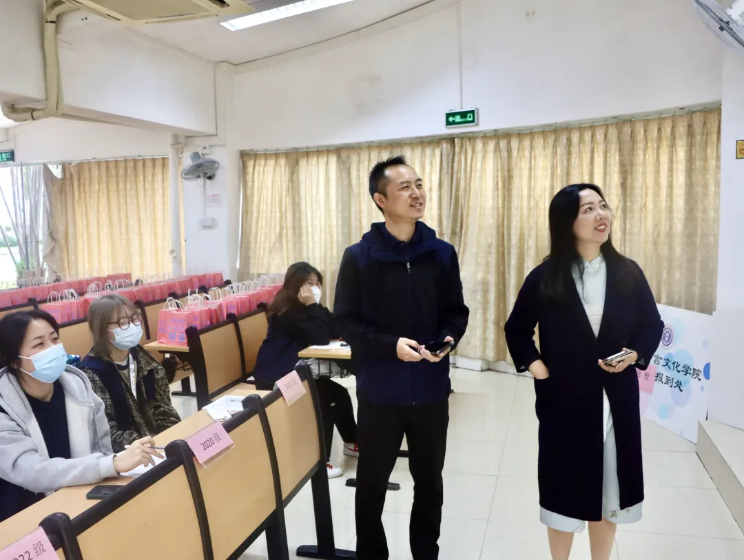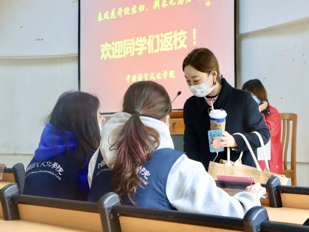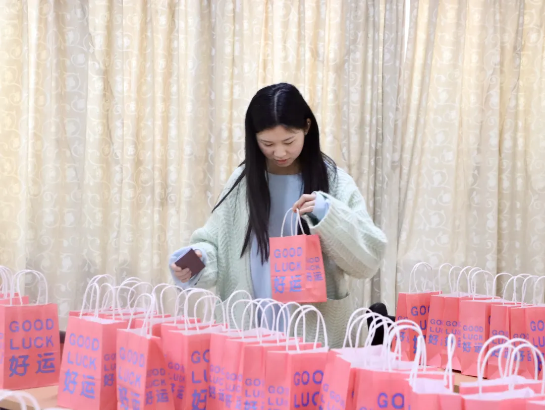 同学们前来报到时,除了完成正常的注册签到程序以外,还可以领取一份来自学院的小礼物。红色的手提袋被整整齐齐地放在桌上,同学们一进门就能看到袋子上的“好运”字样。一瓶饮料、一包零食、一个盲盒,新春伊始,中文学院为大家备上一份体贴与惊喜,一同开启新的又一年。