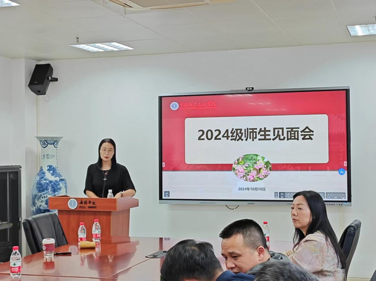 本网讯 10月10日下午,中国语言文化学院在北校区七教407室举办了学术型硕士研究生与学科教学(语文)硕士研究生导师及24级研究生新生见面会。伟德国际1946谢秀兰书记、于屏方副院长、严修鸿教授、何明星教授、邱业祥教授、罗长青教授、李斌教授、袁瑾教授、贝先明教授、魏慧斌副教授、朱志刚副教授、贾璐副教授、专业秘书余越华、肖梦菲以及24级学硕与学科教学(语文)全体新生等出席会议。会议由于屏方副院长主持。