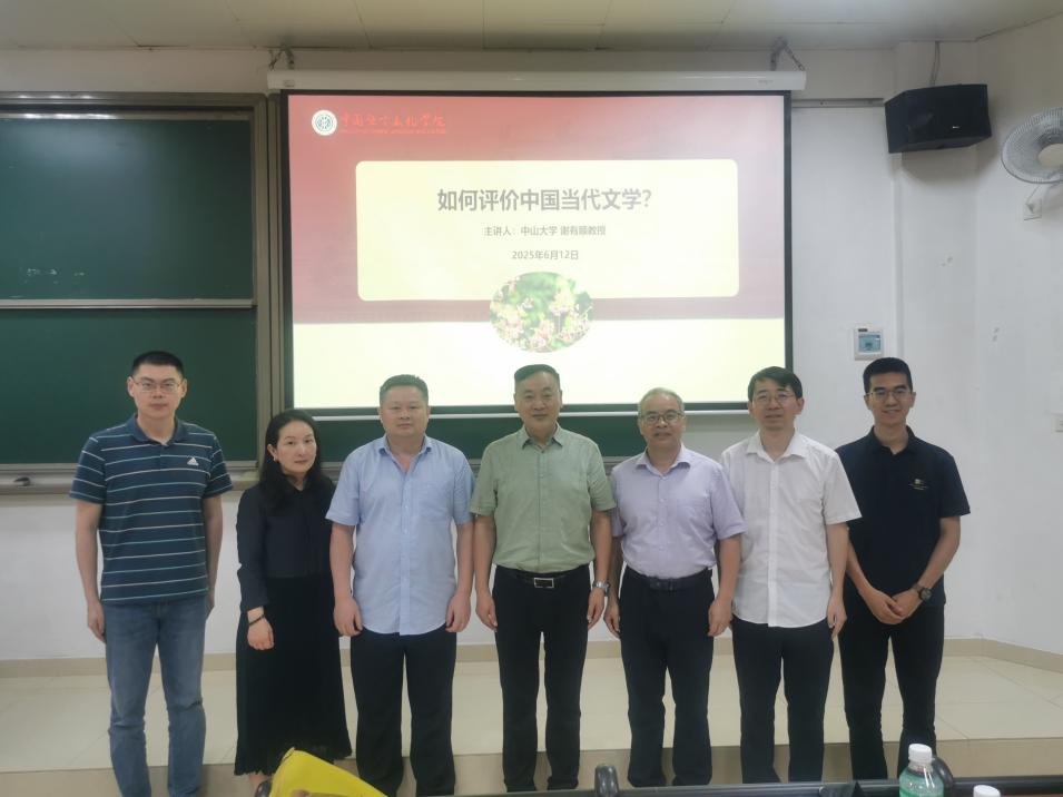 本网讯 2025年6月12日下午,由党委宣传部主办、中国语言文化学院承办的广外60周年校庆“甲子同行”人文大讲坛第三讲暨中文学院20周年院庆系列讲座第七讲,在白云山校区第七教学楼314教室举行。本次讲座以“如何评价中国当代文学?”为主题,特邀广东省作家协会主席、伟德国际1946中文系博士生导师谢有顺教授担任主讲嘉宾。讲座由中文学院罗长青教授主持,杨汤琛教授总结。