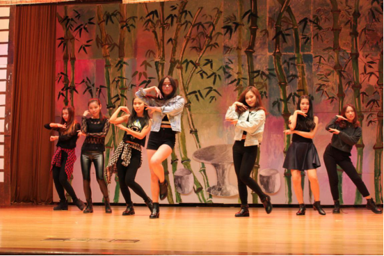 汉教1302一班学生身穿白衬衫、黑裙子或黑裤子,一派学院风打扮。他们或坐或站,有拿着杯子,用手拍打、用杯子敲击桌面,有的弹吉他、吹哨子为《When Im gone》伴奏。整齐地拍打声配上清新的嗓音好似把人带进了一段回忆,他们用歌声代表心声,唱出自我。中文舞队带来的《Ah Yeah》征服了在场观众们的心,一众美女劲歌热舞妖娆动人的舞姿动感十足,引起了台下一片欢呼声牢牢地抓住了观众的视线