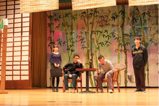 在一片喝彩声中,模特队的队员们缓缓登台。台上型男美女身材高挑,黑白为主调的衣裙在他们行走间翻飞,划出一道道优雅的弧线。男女两两携手,摆出各式迷人诱惑的姿势将全场掀起了一个小高潮。而接下来文管1401的话剧《面试》,则让观众们都笑出了泪花。话剧讲述了两位不同的面试者面试同一个戏剧社团,而受到不同的待遇的故事。其间两人冲突不断,笑料百出,饰演“门”的男主角演技高超,博得了现场一阵又一阵掌声其间创意十足地穿插了吉他自弹自唱和广场舞等,使会场内充满了欢声笑语。